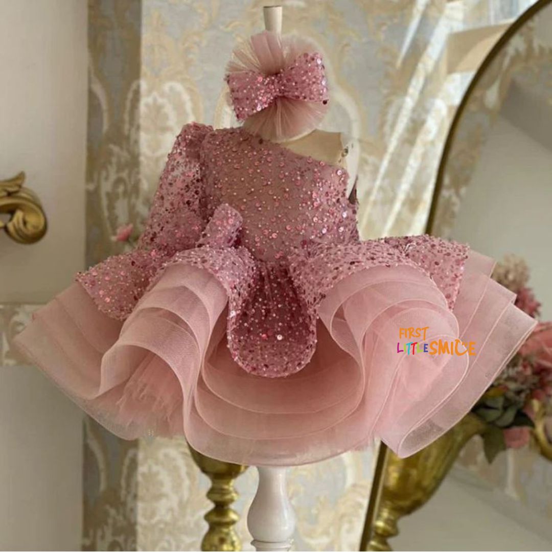 Beautiful onion pink coloured flower girl dress for beautiful princess