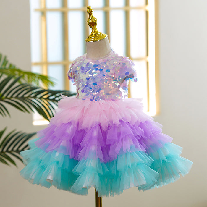 Multicolour Rainbow Unicorn Mermaid Styled Birthday Party Dress